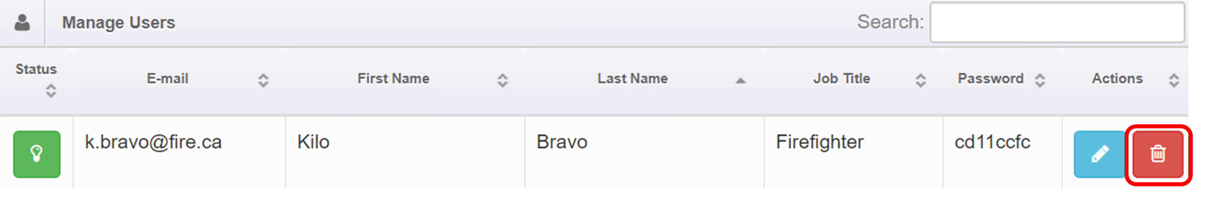 As soon as you save the new user, their account will appear in the Manage Users table where you will be able to find their login information for the Who’s Responding App: