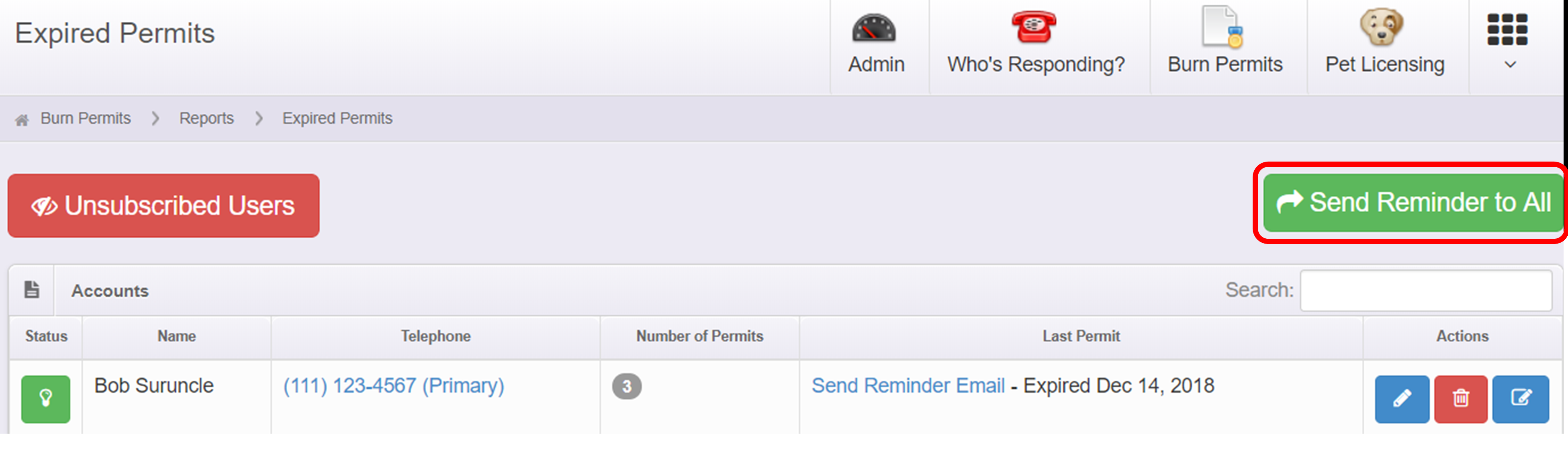 - Name – the resident who is receiving the reminder. If you select their name, the system will link you to the permits under that account.