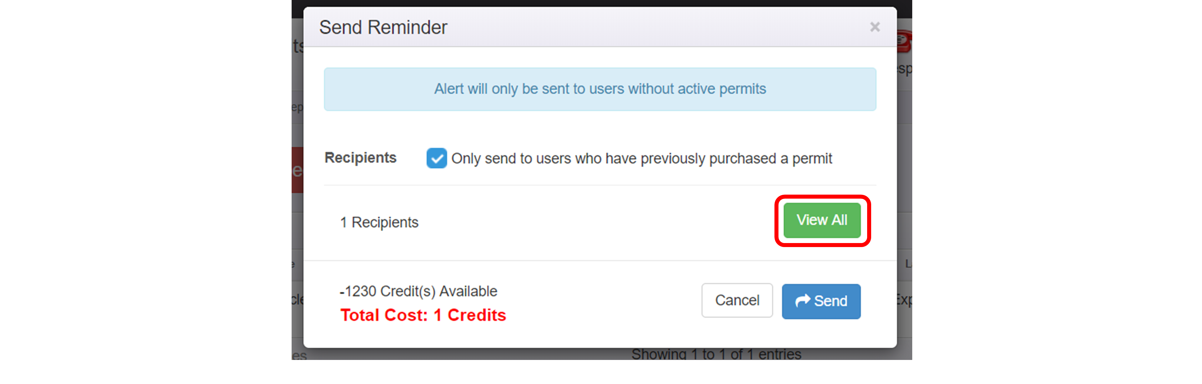 the expired permits pop-up, there is no credit cost breakdown for you to